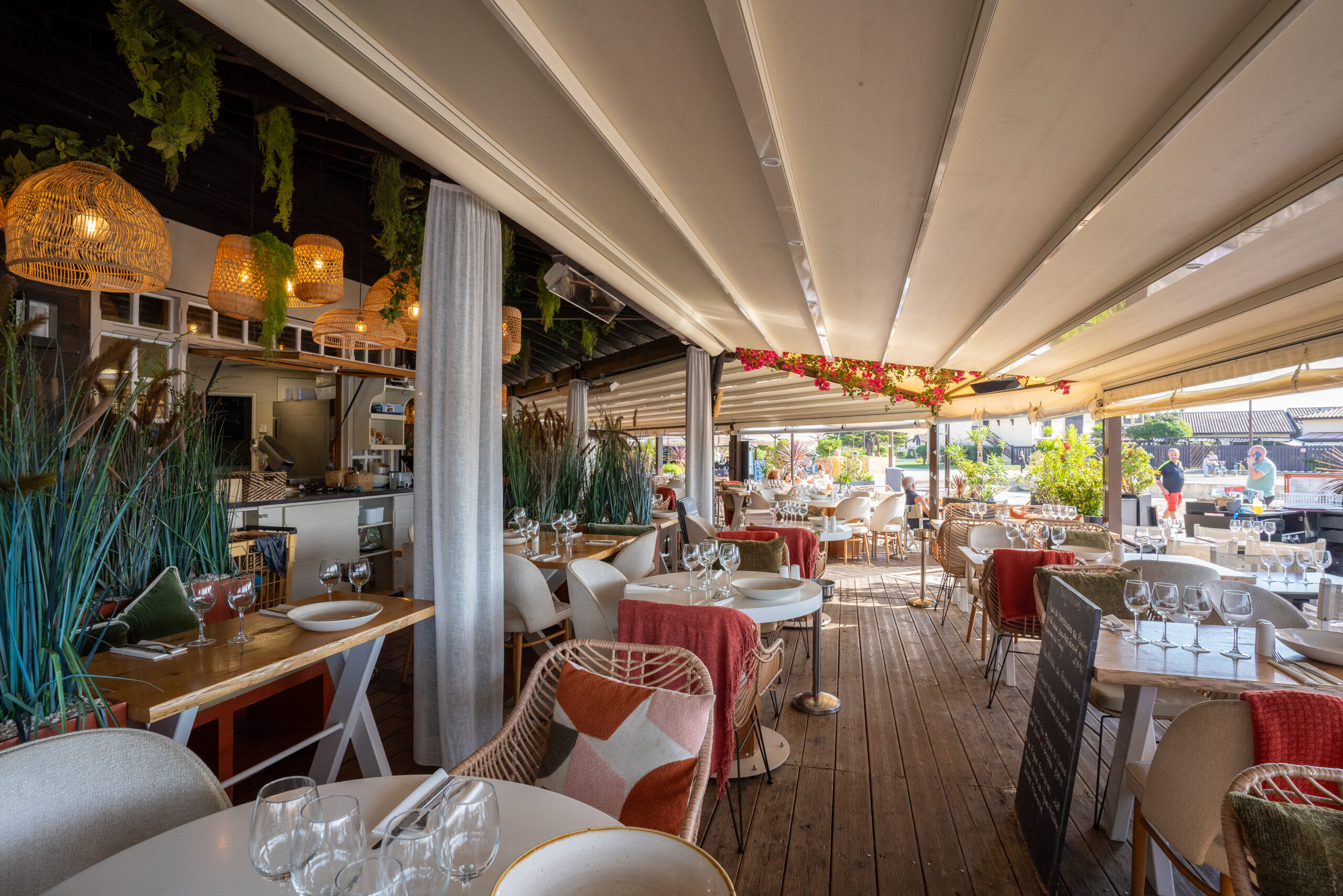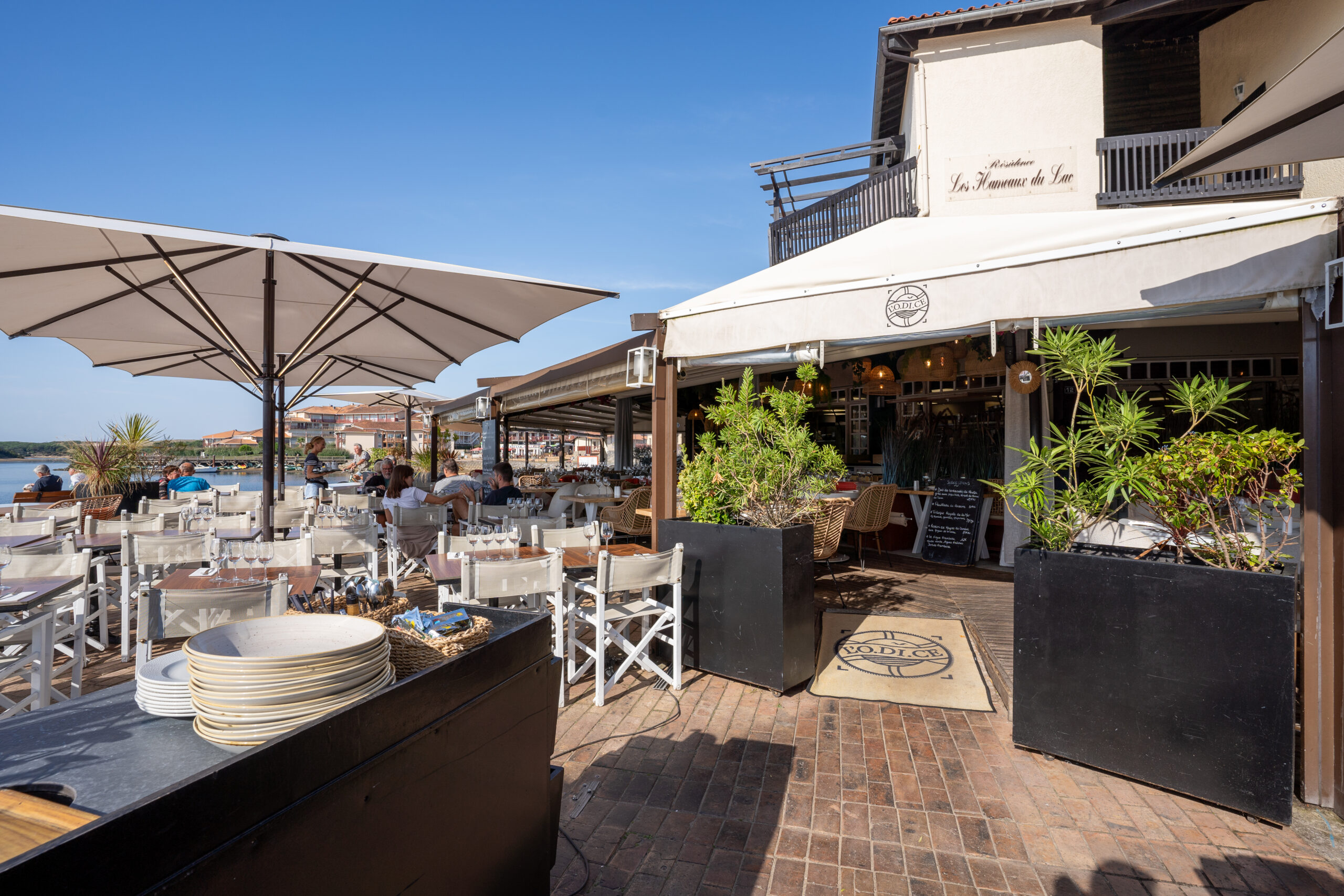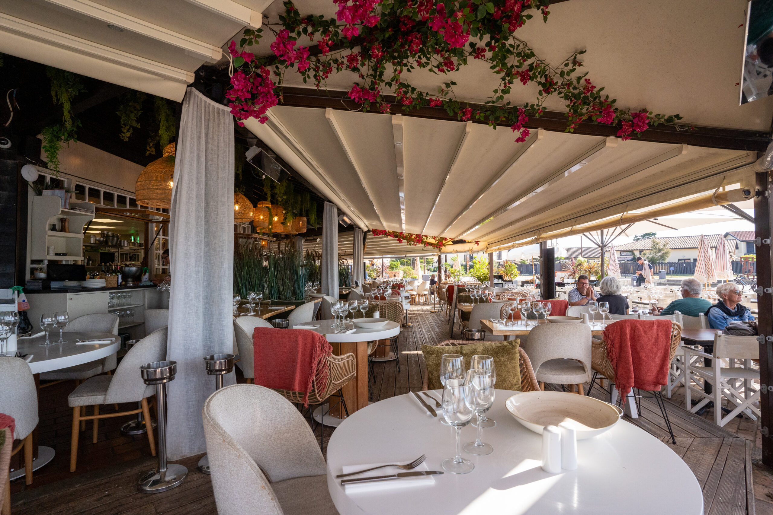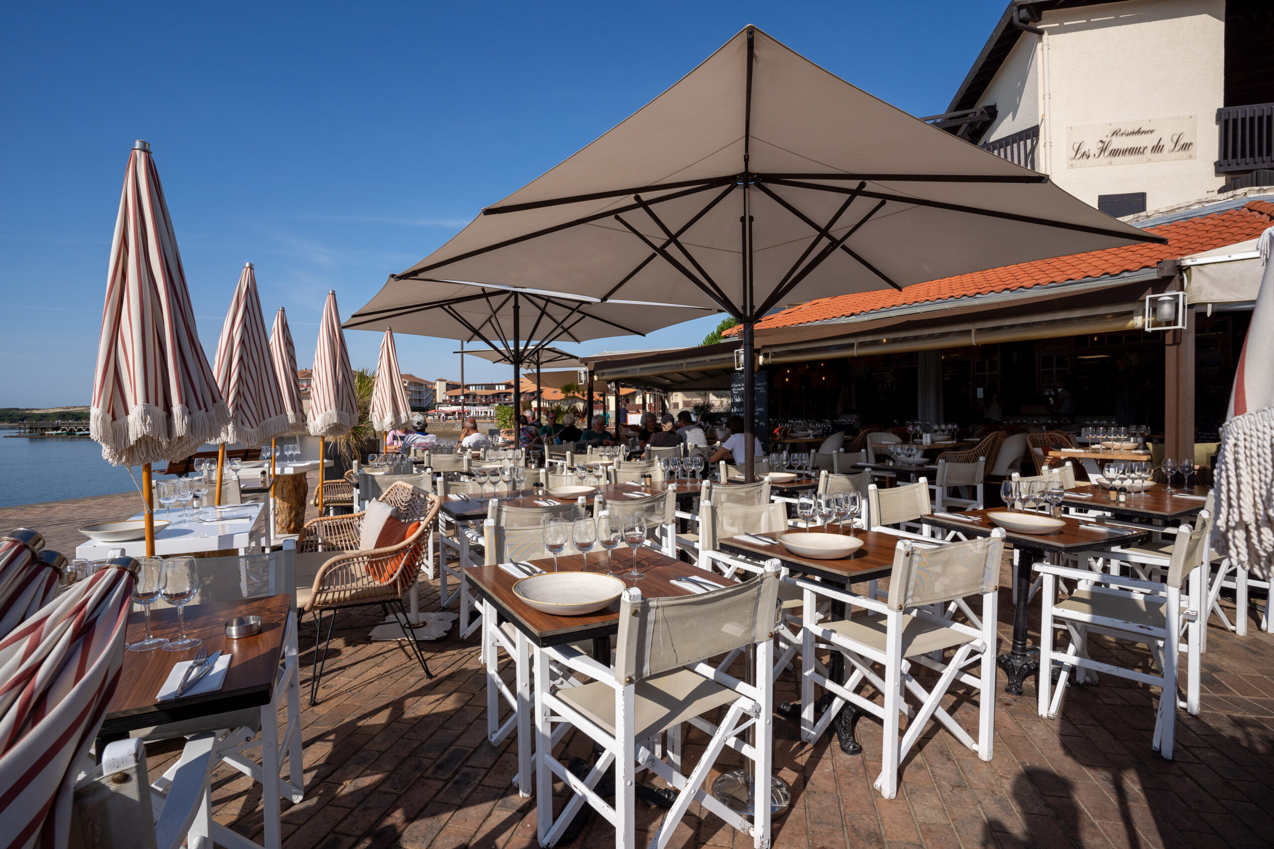 Aménagement du restaurant L’Odice, situé face au lac marin de Vieux-Boucau. Un cadre exceptionnel pour savourer des spécialités culinaires dans une ambiance conviviale, avec une vue imprenable sur le lac.