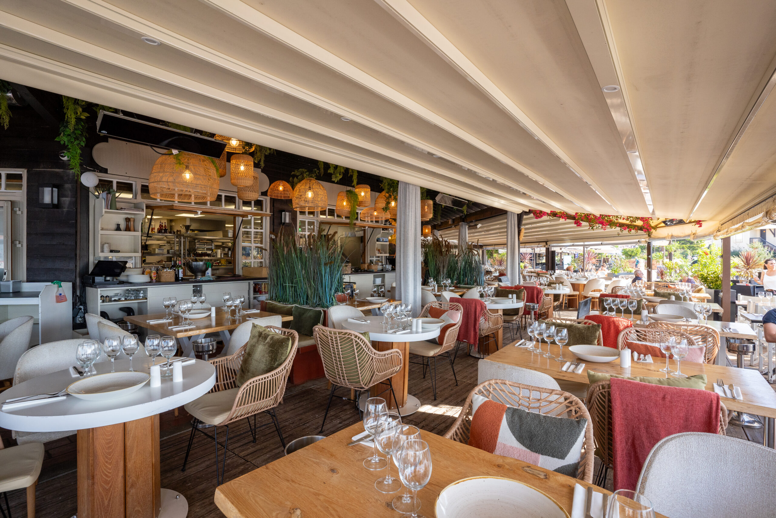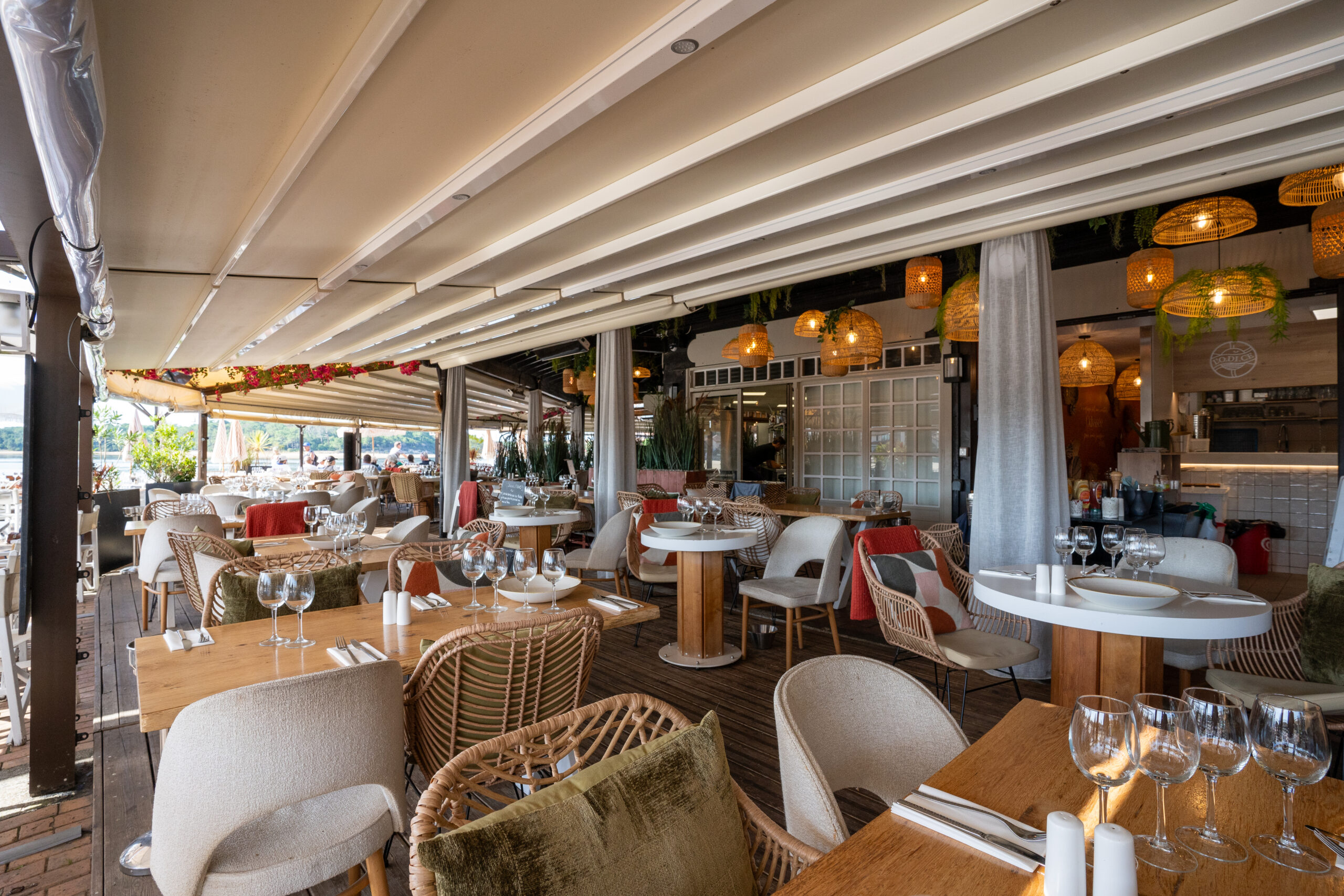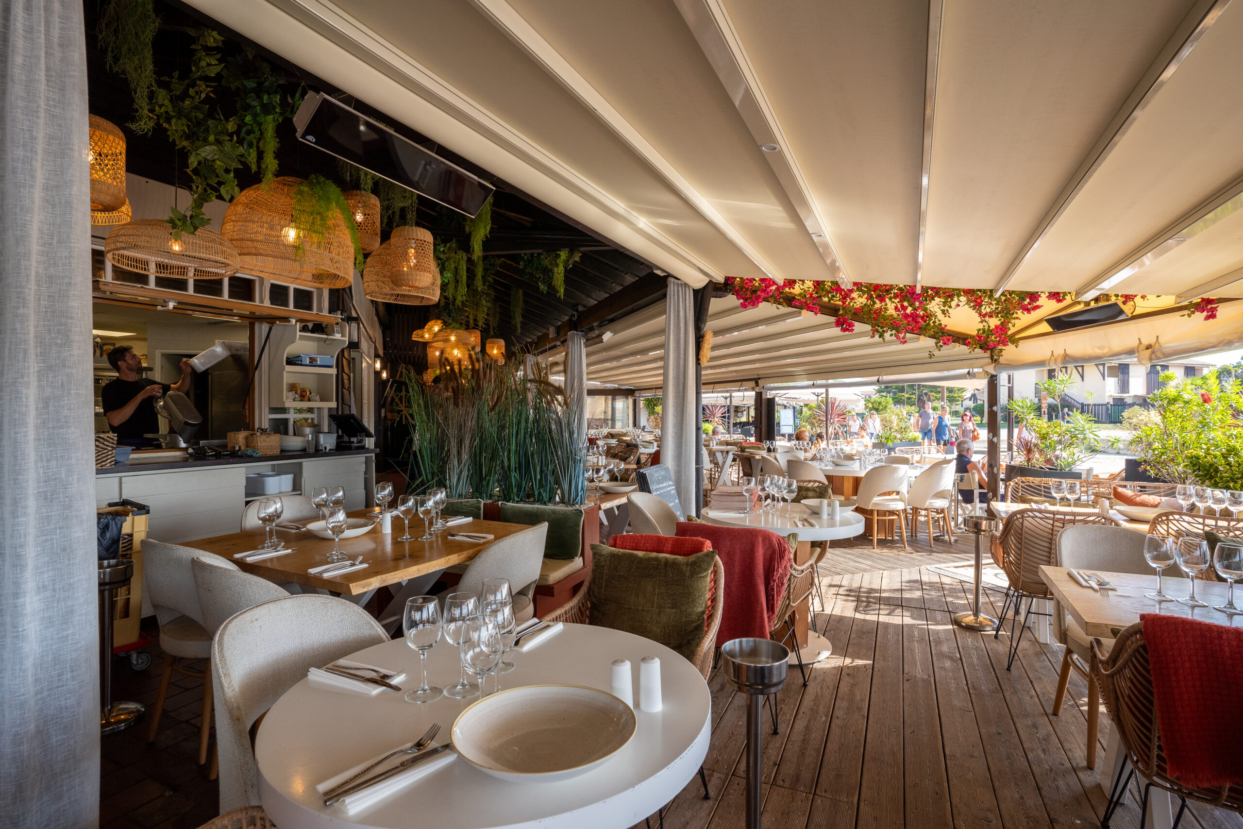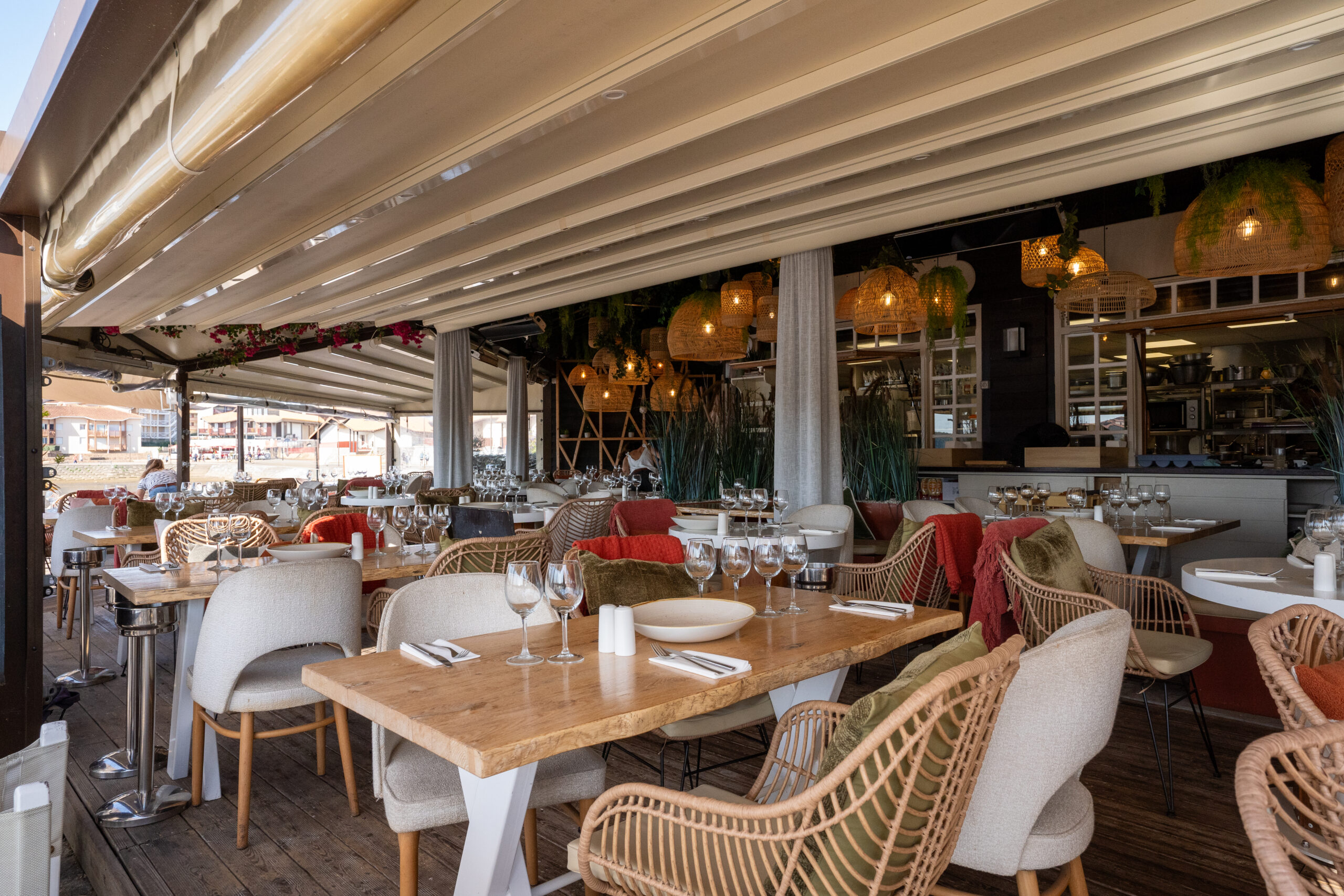 Aménagement du restaurant L’Odice, situé face au lac marin de Vieux-Boucau. Un cadre exceptionnel pour savourer des spécialités culinaires dans une ambiance conviviale, avec une vue imprenable sur le lac.